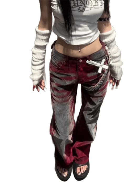 SAVE 50%Jeansy z czerwonym efektem